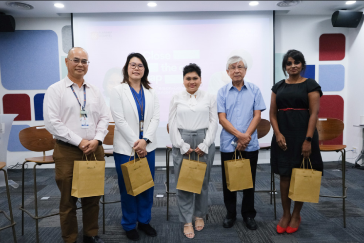 (Kiri-Kanan) Dr Matin Mellor Abdullah, Pakar Onkologi Klinikal dan Dr Teh Mei Sze, Pakar Bedah Payudara (Onkoplastik) bersama pemandiri kanser Puan Noor Shareena Aleeya, En. Johnny Hoo dan Puan Lavaniyah Ganapathy, ibu kepada pemandiri kanser pediatrik.